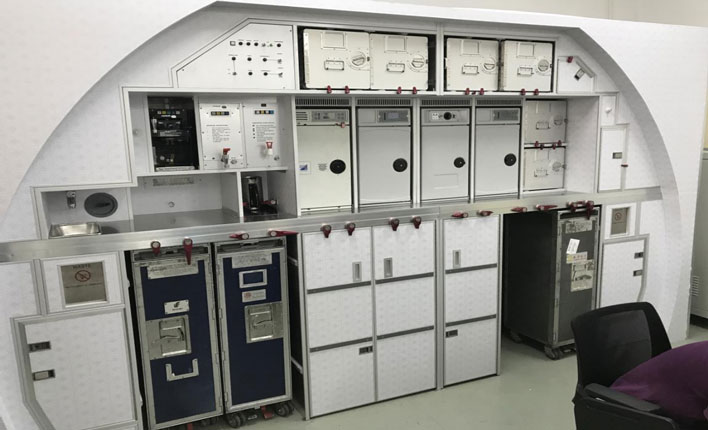 訓(xùn)練艙模擬飛機的真實環(huán)境。它能滿足航空客艙乘務(wù)員訓(xùn)練的各種要求,訓(xùn)練艙包括有 B737-800飛機頭等艙和經(jīng)濟艙各一段、B737-800前門區(qū)、廚房、盥洗室和A320后門區(qū)等。