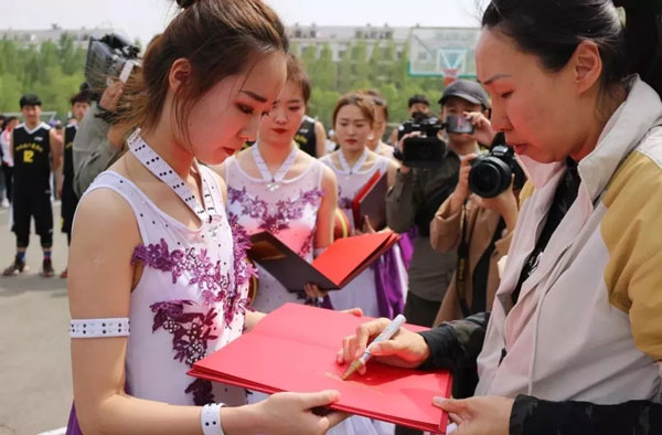 聽聞苗立杰的到來,同學們熱情高漲,紛紛涌向籃球場。苗立杰一踏進籃球場,就收到了大家熱烈的掌聲和歡呼聲,感受到了家鄉(xiāng)學子的熱情,感受到了青年學生對她的喜愛。苗立杰對?;@球隊員進行了耐心的指導(dǎo),告訴隊員們要保持一個良好的心態(tài),她與隊員們親切合影留念,并為隊員們簽名。接過苗立杰親筆簽名的籃球,隊員們都很激動,紛紛表示會以青年人昂揚的姿態(tài)去拼搏、去奮斗、去挑戰(zhàn)每一場比賽,創(chuàng)造屬于自己的未來。隨后,學校理事長李寶山為苗立杰頒發(fā)聘書,聘請苗立杰為校籃球隊榮譽教練。