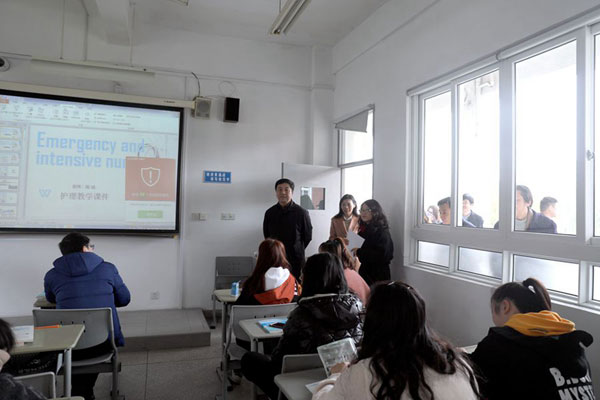 在巡查過程中,校領(lǐng)導(dǎo)深入教室進(jìn)行現(xiàn)場聽課,重點(diǎn)聽取了護(hù)理學(xué)院的新學(xué)期工作匯報(bào),內(nèi)容包括教學(xué)設(shè)備的使用與維修、開學(xué)初教學(xué)準(zhǔn)備、學(xué)生到課和應(yīng)屆畢業(yè)生實(shí)習(xí)安排等情況,并初步探討新學(xué)期專業(yè)建設(shè)規(guī)劃,涉及專業(yè)調(diào)整、對臺交流和港澳臺合作安排等。學(xué)校領(lǐng)導(dǎo)對當(dāng)天的教學(xué)運(yùn)行情況給予了充分肯定,并針對檢查中發(fā)現(xiàn)的問題提出了改進(jìn)意見與建議。校長孫德彪強(qiáng)調(diào),學(xué)校將堅(jiān)持對臺交流與港澳臺合作、護(hù)理學(xué)院與愛爾蘭的合作辦學(xué),進(jìn)一步深化合作的力度。