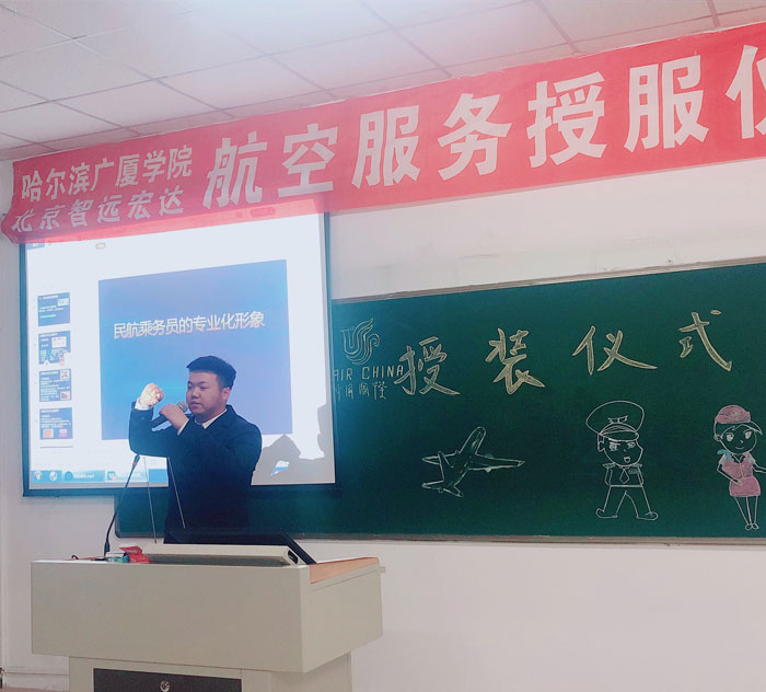近日,哈爾濱廣廈學(xué)院舉行航空服務(wù)專業(yè)學(xué)生授服儀式。儀式上,學(xué)院領(lǐng)導(dǎo)為全體學(xué)生授服,認真為學(xué)生整理制服。隨后,空中乘務(wù)專業(yè)全體同學(xué)進行莊重宣誓。本次授服儀式的成功舉辦,進一步加深了校企雙方的緊密合作,對今后強化專業(yè)建設(shè)起到積極的推動作用。