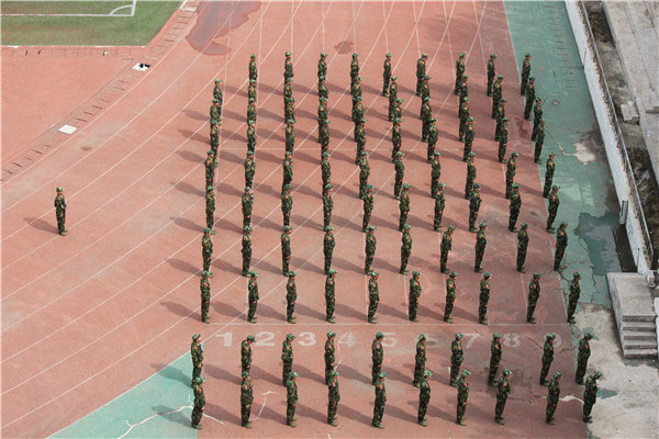 新生的軍訓(xùn)正在進(jìn)行中。金秋時節(jié)的雨水,讓天氣不再悶熱,涼爽的天氣為新生們的訓(xùn)練提供了舒適的天氣環(huán)境。綠茵茵的草地和橄欖綠的迷彩軍裝相互輝映,各分院的新生們顯得活力十足,他們整齊的站著軍姿,踏著有力的步伐,喊著響亮的口號,唱著激昂的軍歌,盡顯軍中風(fēng)范。