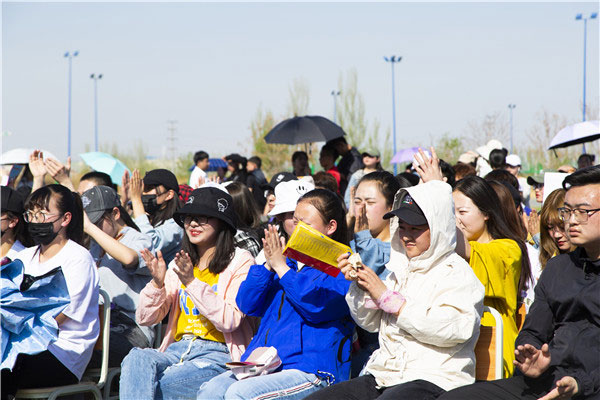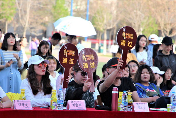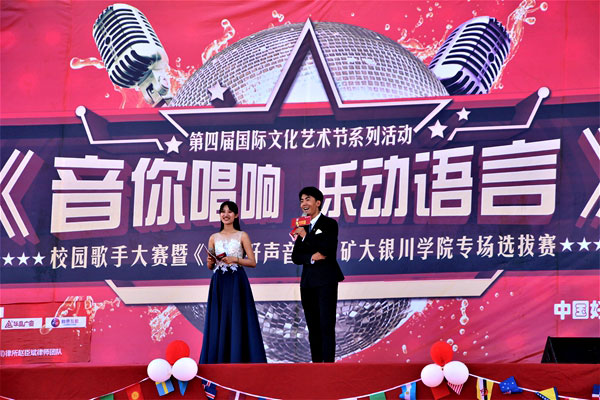 為營造我校國際教育文化氛圍,加強(qiáng)高端化、國際化、個(gè)性化辦學(xué)理念,豐富校園文化生活,4月17日下午,由國際教育學(xué)院、經(jīng)濟(jì)與管理學(xué)院聯(lián)合全國知名音樂評(píng)說節(jié)目《中國好聲音》寧夏組委會(huì)舉辦的學(xué)校第四屆國際文化藝術(shù)節(jié)系列活動(dòng)之“音你唱響 樂動(dòng)語言”校園歌手大賽初賽暨《中國好聲音》中礦大銀川學(xué)院海選專場選拔賽在學(xué)校運(yùn)動(dòng)場隆重舉行。國家一級(jí)演員、寧夏著名女高音歌唱家趙云臺(tái)、寧夏演出行業(yè)協(xié)會(huì)常務(wù)副會(huì)長、寧夏音協(xié)流行音樂學(xué)會(huì)秘書長孫繼東、《中國好聲音》寧夏賽區(qū)組委會(huì)會(huì)長、寧夏華宇星空文化傳媒有限公司董事長劉蜜珊為海選評(píng)委出席。同時(shí)到場的嘉賓有招商銀行銀川興慶府支行行長張濤、學(xué)校國際教育學(xué)院院長張康龍、宣傳部副部長張弘德、經(jīng)濟(jì)與管理學(xué)院黨總支書記、副院長楊欣欣及各學(xué)院團(tuán)總支書記、老師、學(xué)生近一千人共同觀看本場比賽。