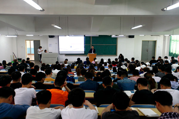 4月18日下午,學(xué)校黨委書記郭書印在A5階一北教室為2017級(jí)近300名學(xué)生講授以“高等教育改革發(fā)展趨勢”為主題的專題講座,幫助同學(xué)們了解本科教育的戰(zhàn)略地位、改革發(fā)展的趨勢和具體舉措。