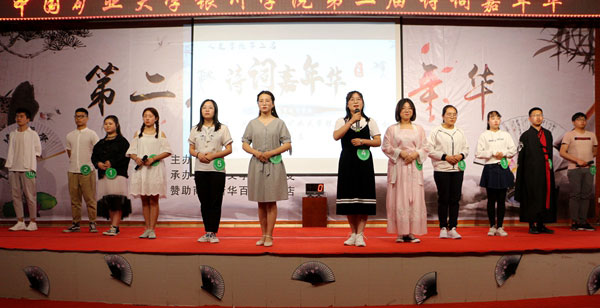 為弘揚(yáng)中華民族優(yōu)秀傳統(tǒng)文化,提高我校學(xué)生的人文素質(zhì)和道德情操,推動(dòng)校園文化建設(shè)。4月22日晚上,由我校人文學(xué)院主辦的第二屆詩(shī)詞嘉年華決賽在圖書(shū)館六樓報(bào)告廳舉行。人文學(xué)院院長(zhǎng)霍維洮,副院長(zhǎng)馬廷福,校團(tuán)委書(shū)記喬麗娜及各學(xué)院輔導(dǎo)員參加本次活動(dòng)。