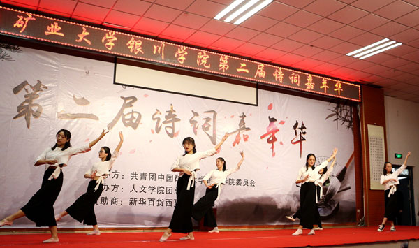 比賽首先進(jìn)行的是詩(shī)詞知識(shí)搶答,選手們思維敏捷、沉著應(yīng)對(duì),以充沛的表現(xiàn)力和深厚的詩(shī)詞功底為現(xiàn)場(chǎng)觀眾帶來(lái)了一場(chǎng)精彩絕倫的詩(shī)詞盛宴。活動(dòng)過(guò)半,人文學(xué)院團(tuán)總支學(xué)生會(huì)文體部的姑娘們給大家?guī)?lái)了一段優(yōu)美的舞蹈《不染》,活躍了現(xiàn)場(chǎng)氣氛。飛花令環(huán)節(jié),充分展現(xiàn)了參賽選手們的詩(shī)詞功底,驚艷現(xiàn)場(chǎng),掌聲不斷!