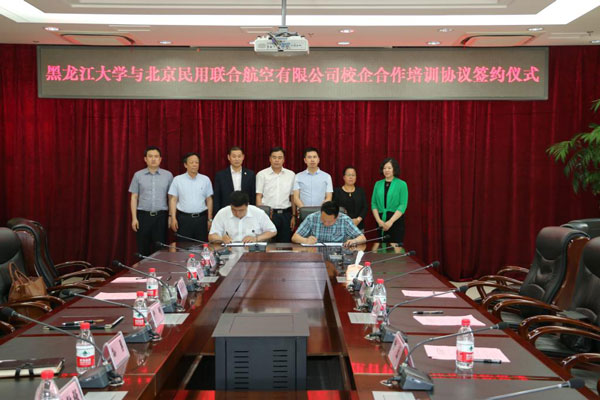 簽約儀式上,與會雙方共同觀看了黑龍江大學(xué)與北京民用聯(lián)合航空有限公司的宣傳片,詳細了解了黑龍江大學(xué)、北京民用聯(lián)合航空有限公司的發(fā)展歷程、基本情況和戰(zhàn)略目標(biāo)。