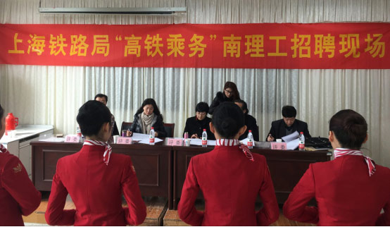 3月9日,上海鐵路局高鐵乘務(wù)員南京理工大學(xué)專場(chǎng)招聘會(huì)在我校藝文館舉行,我院國(guó)際空乘班2017屆152名同學(xué)報(bào)名參加面試。