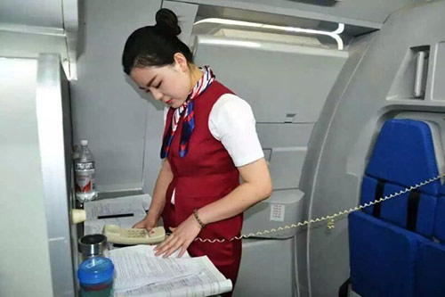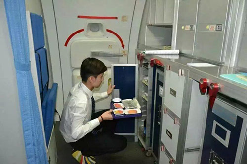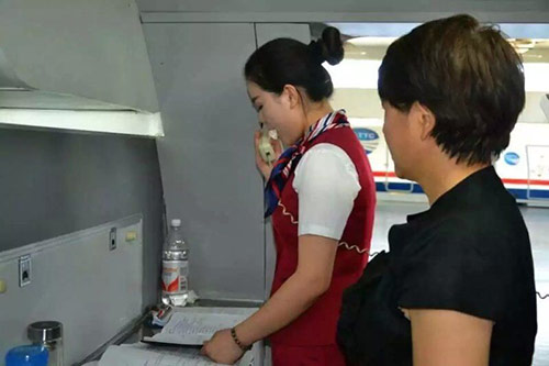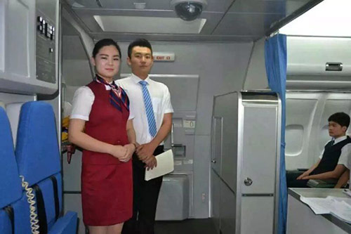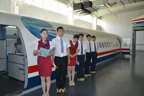 資深名航專業(yè)空中服務(wù)人員對學(xué)生進行培訓(xùn)指導(dǎo)