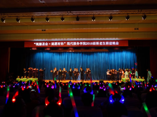 青春筑夢(mèng)織華章,雨潤(rùn)棟梁遍五湖。2016年12月23日17時(shí)在圖書(shū)館報(bào)告廳,現(xiàn)代服務(wù)學(xué)院2016年新老生聯(lián)誼會(huì)在師生的熱切期盼中如約而至,學(xué)院2016級(jí)全體新生和部分老生代表參加了本場(chǎng)晚會(huì)。校學(xué)生處處長(zhǎng)周振剛、學(xué)生工作部綜合管理科科長(zhǎng)劉春媚、團(tuán)委辦公室劉宇老師、現(xiàn)代服務(wù)學(xué)院院長(zhǎng)張明明、教學(xué)總管肖偉民、物流教研室主任何巖松、學(xué)工辦主任楊琴及全體輔導(dǎo)員老師共同觀看了本場(chǎng)晚會(huì)。