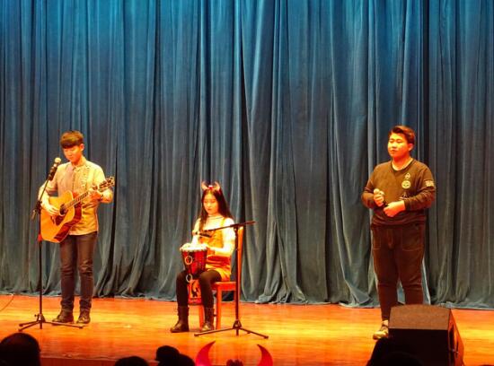歌聲悠揚(yáng)、演繹精彩,節(jié)目中間,四名同學(xué)帶著愿望箱親臨會(huì)場(chǎng),帶著同學(xué)們的愿望來(lái)到了舞臺(tái)中間,將晚會(huì)帶入了另一個(gè)高潮。