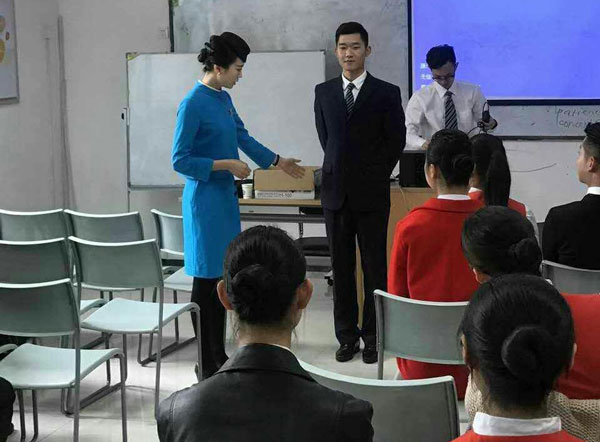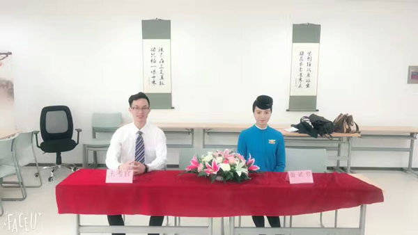 2017年4月5日下午,廈門航空乘務(wù)長及人事要員來我校進行招聘宣講會以及空乘初試。
