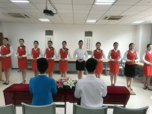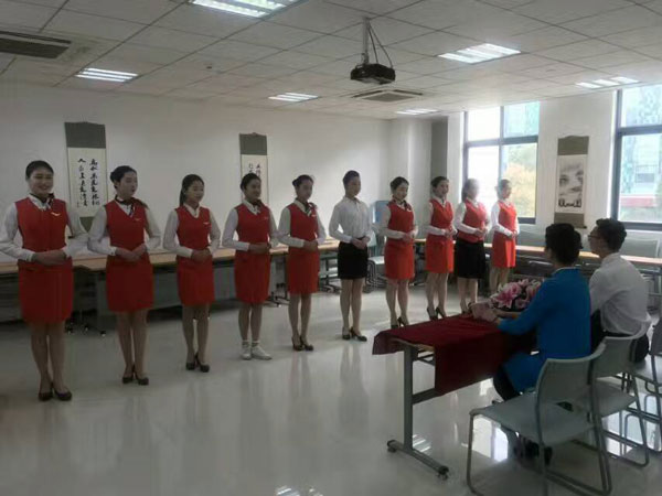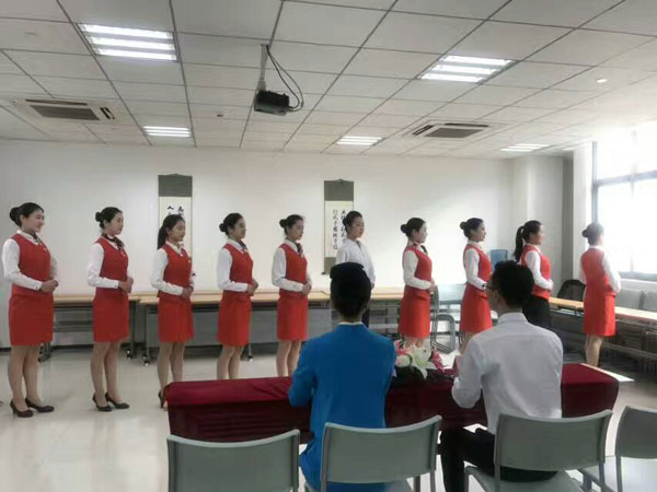 廈航乘務(wù)長親自指導(dǎo)妝容和服裝。