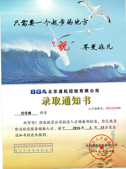 恭喜閆宇濤同學(xué)被我校錄取【東海學(xué)院航空】