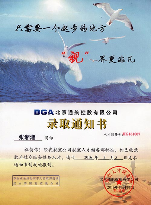 恭喜張湘湘同學(xué)被我校錄取【東海學(xué)院航空】