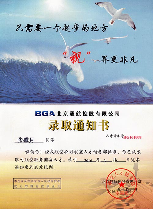 恭喜張馨月同學(xué)被我校錄取【東海學(xué)院航空】