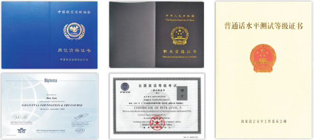 可根據(jù)所學(xué)專業(yè),參加相關(guān)部門或行業(yè)組織的考試,成績(jī)合格,可取得相應(yīng)的職業(yè)資格證書,如公共英語(yǔ)三級(jí)、普通話等級(jí)證書、安檢證書、民航客運(yùn)證、急救證、海員證書、禮儀證書、茶藝證書、民航客艙乘務(wù)員培訓(xùn)合格證等。