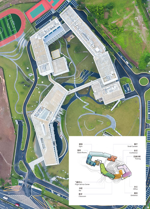 教學(xué)實(shí)訓(xùn)區(qū):包括省低空飛服中心,管制、安檢、航空禮儀等實(shí)訓(xùn)室11間、大小報(bào)告廳、多功能廳、會(huì)議室以及各類教室39間,可同時(shí)滿足不同類型的教學(xué)、培訓(xùn)及會(huì)務(wù)需求。