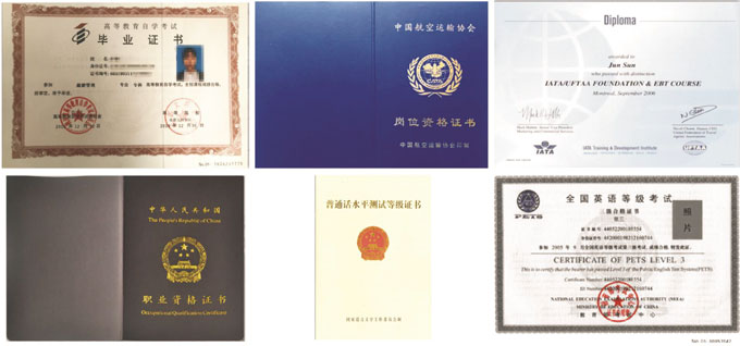 2、根據所學專業(yè),參加相關部門或行業(yè)組織的考試,成績合格,可取得相應的職業(yè)資格證書、職業(yè)技能等級證書,如公共英語三級、普通話等級證書、安檢證書、航空應急救援證、民航客運證、急救證、海員證書、禮儀證書、茶藝證書、民航客艙乘務員培訓合格證等。